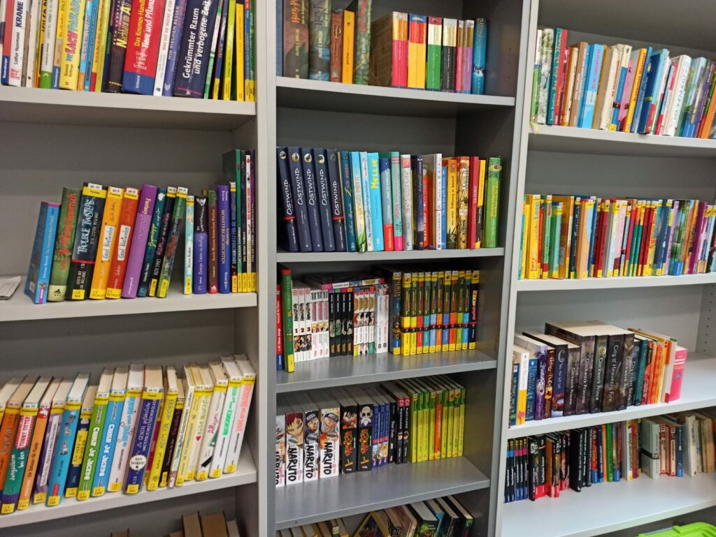 Ab sofort befinden wir uns im kleinen Raum hinter dem SLZ und ihr findet uns dort immer dienstags in der großen Pause. Außerdem haben wir eine große Auswahl an neuen Sachbüchern und Mangas angeschafft.