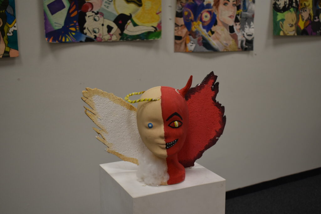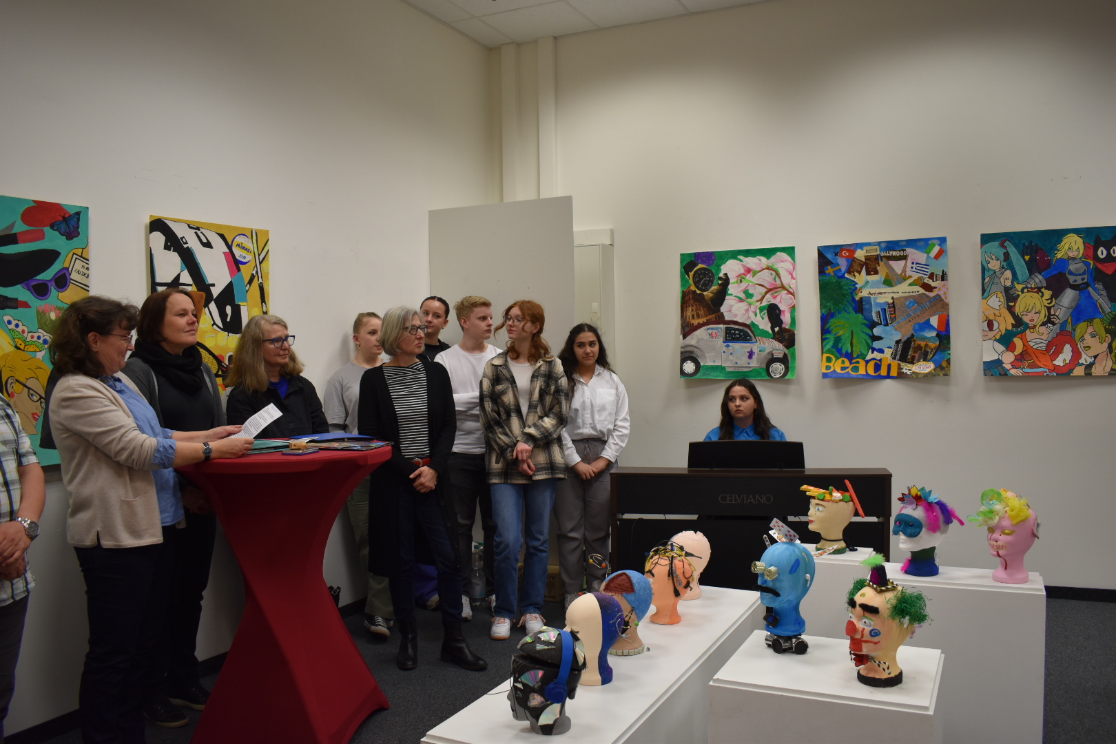 In dieser Ausstellung sind Plastiken und Bilder der Q1 und Q2 zu sehen. Möglich gemacht hat diese Ausstellung das Management der Rathausgalerie. Die Ausstellung bleibt im Kunstschaufenster noch ca. 6 Wochen bis zum Anfang der Sommerferien. Die Exponate sind durch die professionelle Präsentation hinter Glas auf Ausstellungspodesten zu den Öffnungszeiten der Rathausgalerie gut einsehbar.