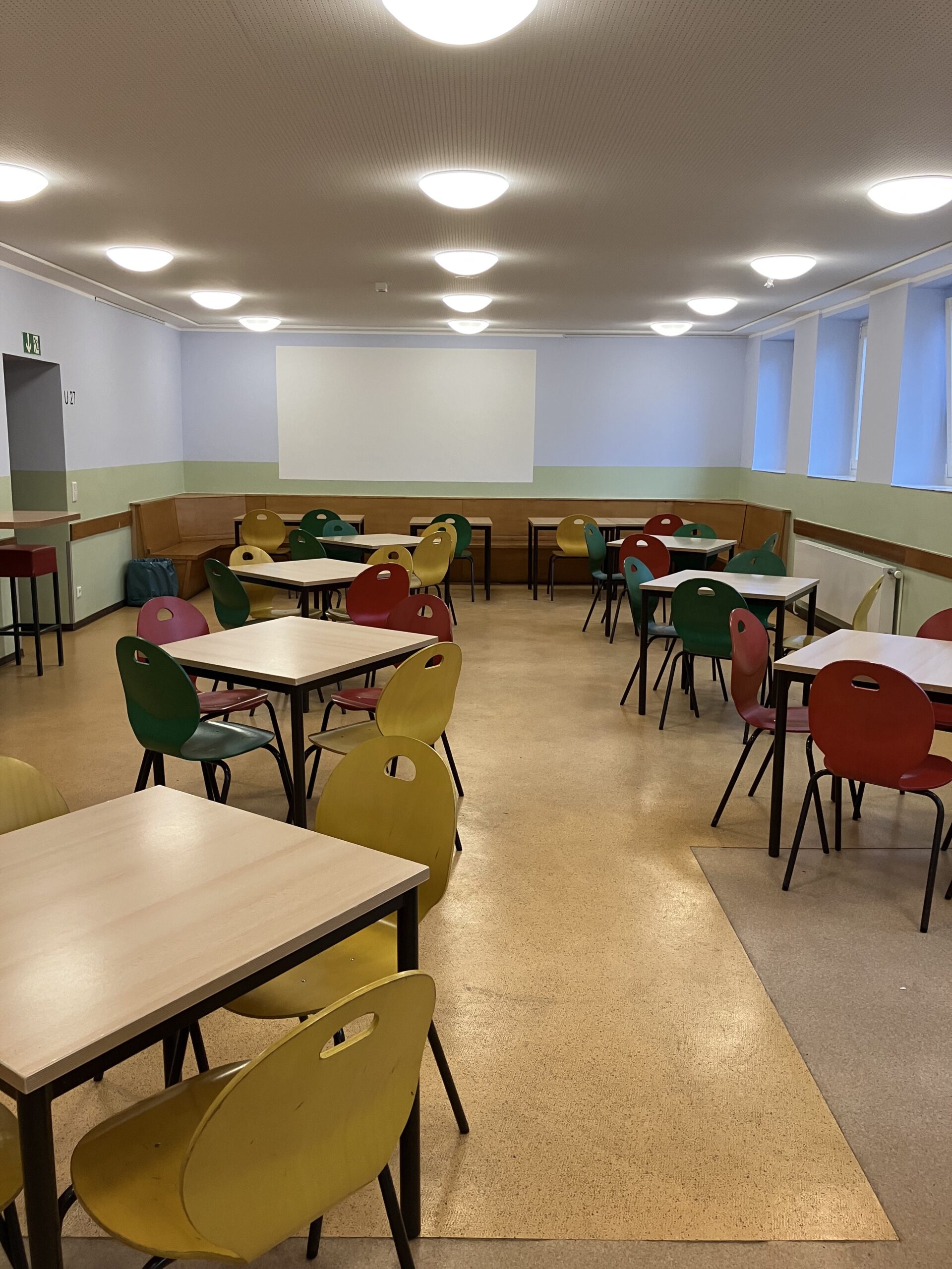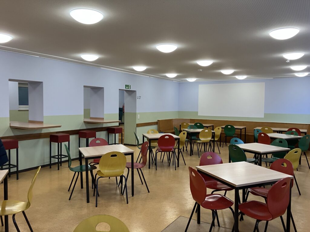 Die Cafeteria der Schule wurde renoviert. Die hellen und freundlichen Farben wurden von den Schülerinnen und Schülern selbst ausgewählt.