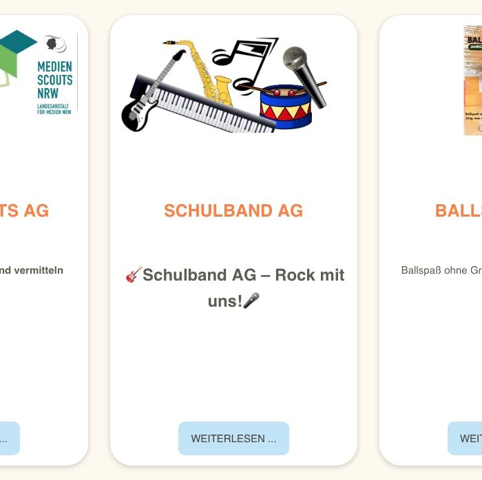 Eine breite Auswahl an Arbeitsgemeinschaften bereichert auch in diesem Schuljahr unser Angebot. Ob Sport, Theater, Naturwissenschaften oder Schach – für jede Schülerin und jeden Schüler ist etwas dabei! Klickt euch durch...